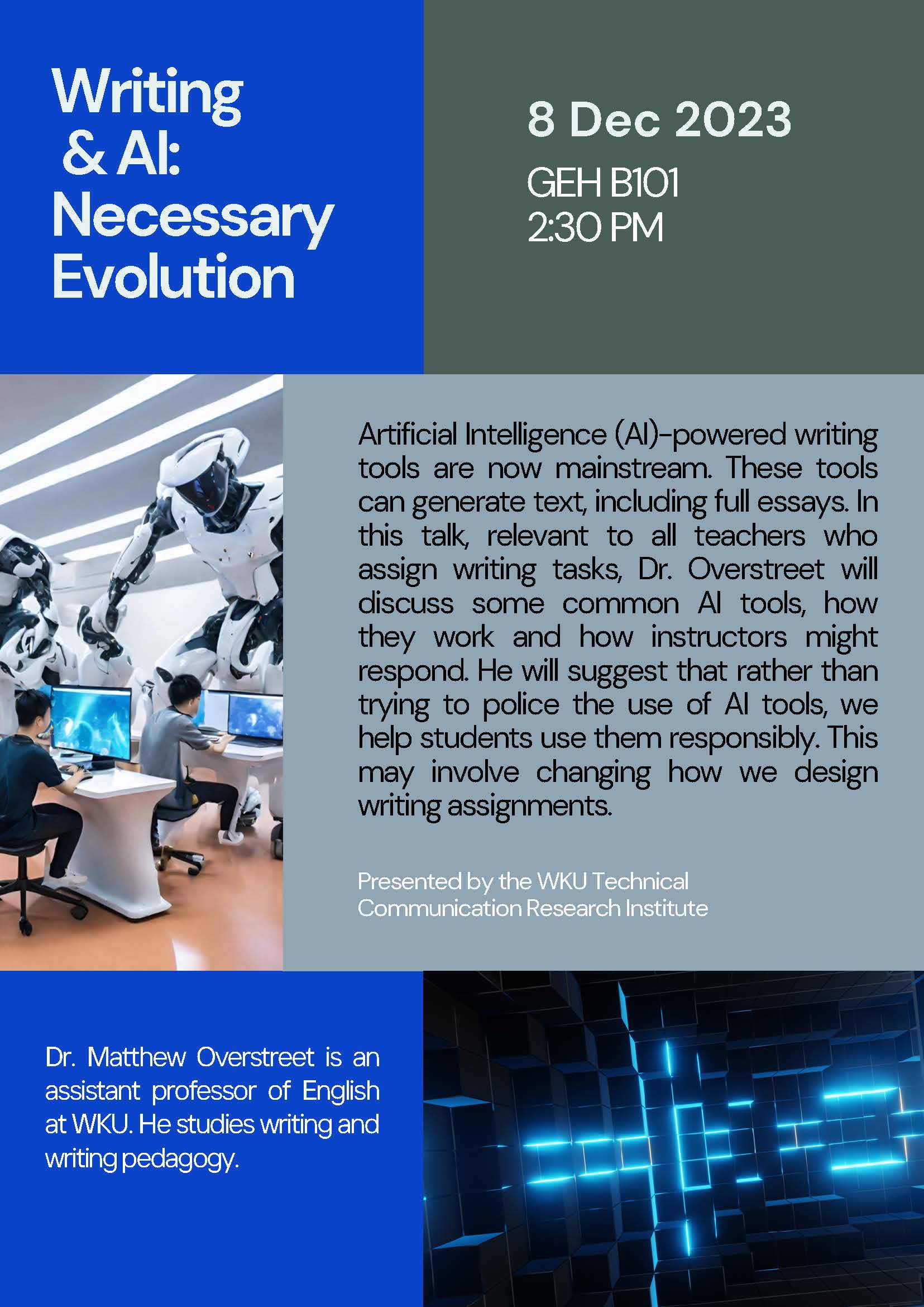 One of my great joys is talking with others about the teaching of writing. Towards this end, I’m always available to lecture, or lead workshops, seminars or other teacher-training activities. Topics vary, but at the moment, I’m particularly interested in multimodal composition & the effective use of writing technologies, particularly AI-powered tools like ChatGPT.